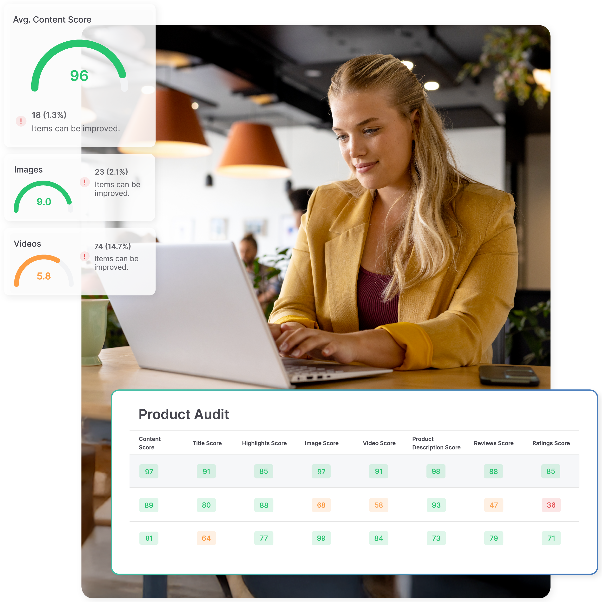 Monitor PDP completeness, product content accuracy, image standards, and retailer compliance requirements at scale.